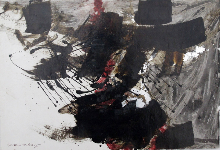 Untitled belongs to an early abstract series and reflects Bui Huu Hung’s experimental use of lacquer on paper, a rare and technically demanding support for the medium. Abstraction was present from the outset of his practice and would later reappear at larger scales and in different material forms. This work was presented in Black & White at Salon Natasha, Hanoi, in 1996, an exhibition organised by Eric Leroux. The exhibition responded to minimalist practices in art and stood in deliberate contrast to the brightly coloured palettes prevalent in commercial galleries at the time.